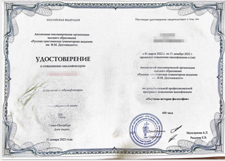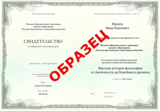 выдается документ* о дополнительном образовании установленного государством образца от РХГА